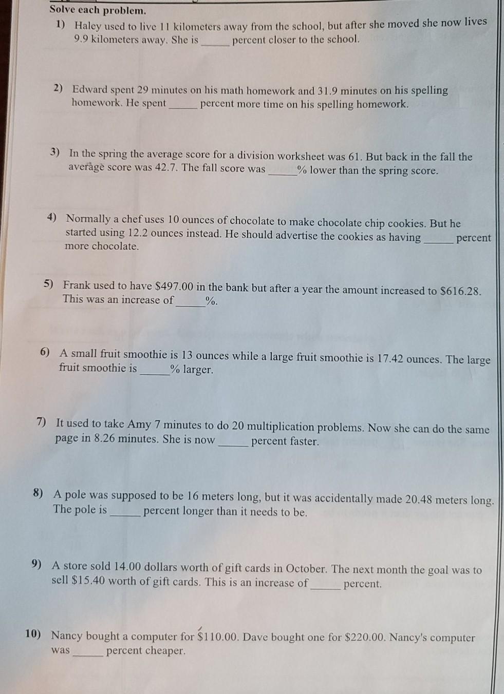 Percentages These are great worksheets for applying percentages to other common types of math problems, or seeing how a percentage relates to a specific decimal or fraction ...